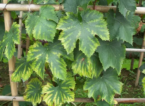 该原因引起的叶片发黄,首先会表现叶片边缘先发黄,然后逐渐干枯,而不是先从叶片内部开始发生的。以上就是几种引起葡萄叶片黄化的原因,在生产上,找到发病的原因,对应的进行处理就好。