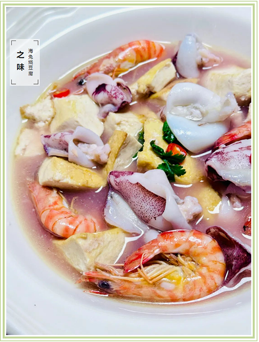 海兔烧豆腐是一道经典的快手菜肴,其精髓在于“快”与“鲜”。烹饪时,只有火候把控到位,才能最大程度地保留海兔的脆嫩口感。一旦火候过头,食材风味便会大打折扣,失去那份独特的鲜嫩劲儿。这道菜不用任何其它提鲜的调料,只加了几只小虾,便让鲜美滋味无限叠加。吸饱汤汁的豆腐,更是鲜香四溢,滋味儿妙不可言。丝路干白,酒体清爽、干净,与海兔的鲜嫩、豆腐的软糯交织,仿佛是为这道佳肴量身定制的灵魂伴侣一般美妙。