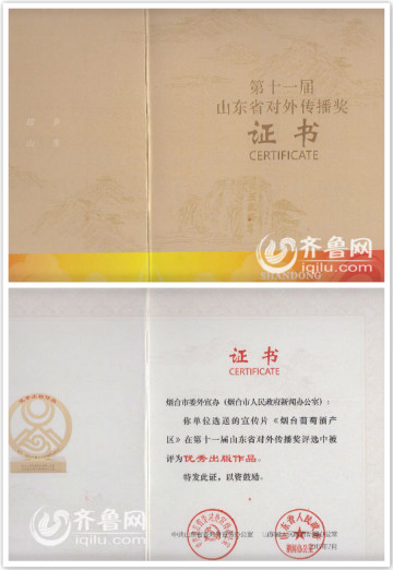 据悉,由山东省委对外宣传办公室、山东省人民政府新闻办公室组织举办的第十一届山东省对外传播奖近日揭晓,烟台市葡萄与葡萄酒局选送的《烟台葡萄酒产区》宣传片在此次评选中被评为优秀出版作品。