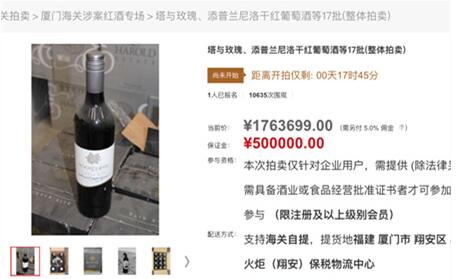 记者10月16日从厦门海关获悉,该关将于17日-18日首次尝试借助京东平台,对涉案在扣的走私19349瓶葡萄酒进行拍卖。