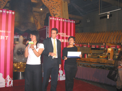 | 法国食品协会北京区经理雷鸣先生为大奖获得者颁奖(法国航空公司提供的北京—巴黎往返机票) |