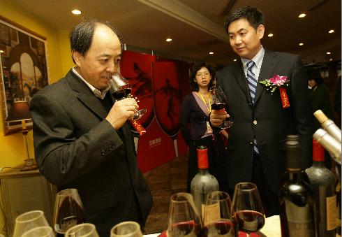 国家体育总局副局长肖天与中粮集团总裁助理、中粮酒业董事长曲喆一起品鉴长城美酒