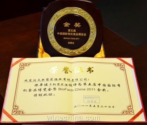 在第五届中国国际有机食品博览会(BioFach China 2011)上,四川九寨沟天然葡萄酒业有限责任公司的神沟九寨红葡萄酒获得金奖。