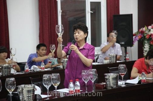 葡萄酒专家张春娅正在讲解乡都干白的特点