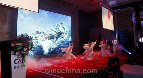 在最后的晚宴上,现场嘉宾不仅品味了美酒,而且还欣赏到了一系列精彩纷呈的表演节目,其中最受亲睐的当属由武当功夫团带来的武术表演《天下太极出武当》。8位武当传人在台上排成方阵,一招一式的太极拳使得刚柔并济,而且极具观赏性,引得台下阵阵掌声。