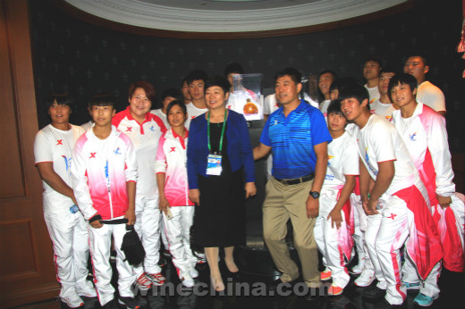 王朝公司总经理尹吉泰、销售公司总经理杨海燕接待了天津柔道队一行。
