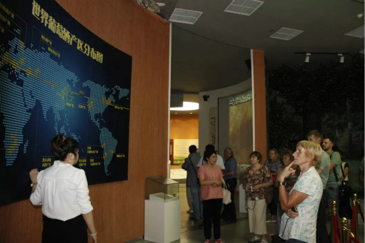 2018年8月8日,由吉林省科技厅国际合作处、吉林省外国专家局、中国农业科学院特产研究所相关人员,陪同全俄波塔平科葡萄栽培与酿酒研究所、全俄马伽拉奇葡萄栽培与酿酒研究所等6家科研单位,阿里院士等13名专家,共23人莅临通天山葡萄酒文化产业园考察参观。