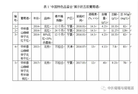 会上,国内著名酿酒师顾问李德美老师向大家详细介绍了5款分别由‘北红’和‘北玫’酿制的单品种酒和混酿酒,包括4款干红和1款半甜桃红葡萄酒(表1)。5款酒在年份、产区、葡萄品种和酿造工艺上有所不同。