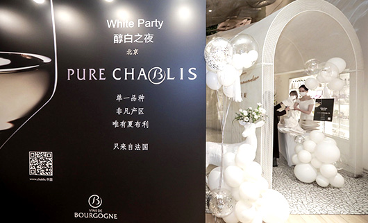 2020年11月9日,身着白色服装的来宾们陆续走进白色鲜花、白色帷幔、白色桌饰妆点下的北京Tomacado花厨餐厅,参加一场名为“醇白之夜品鉴派对”的夏布利/Chablis主题派对。