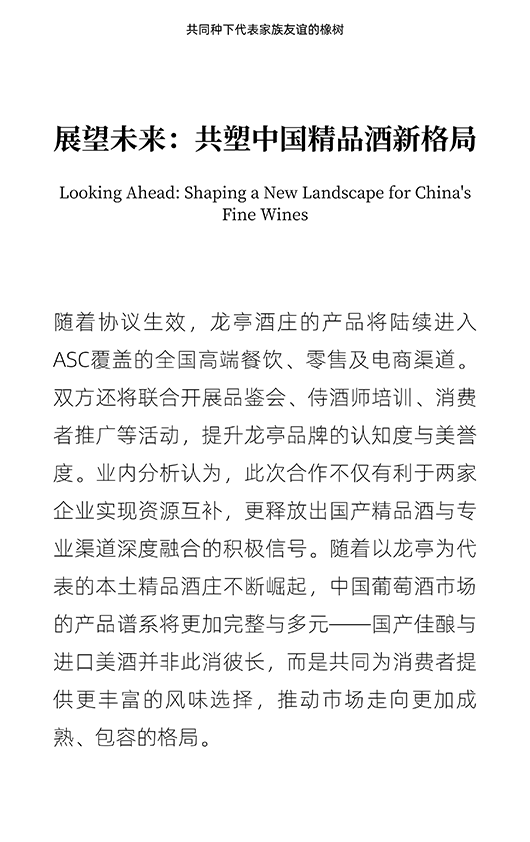 强强联手|龙亭酒庄与ASC精品酒业达成战略合作,深耕中国精品葡萄酒市场